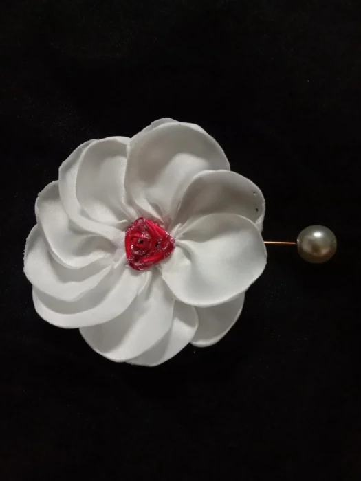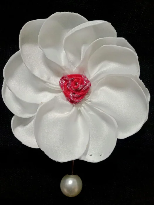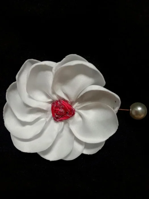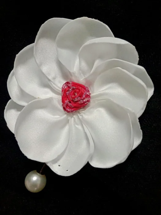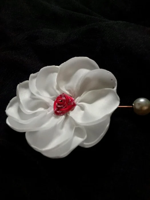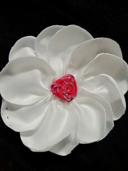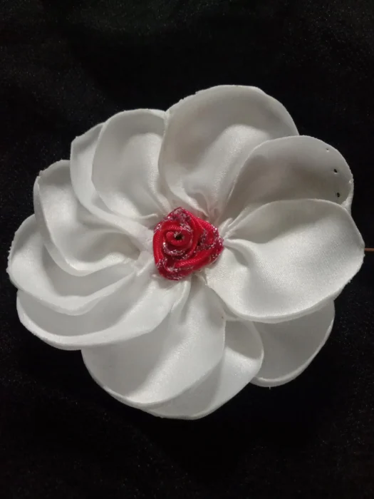 Der Artikel ist aus Satin gefertigt, mit einzelnen Blütenblättern, die einzeln für ein ästhetisch ansprechendes Design von Hand gefertigt werden.