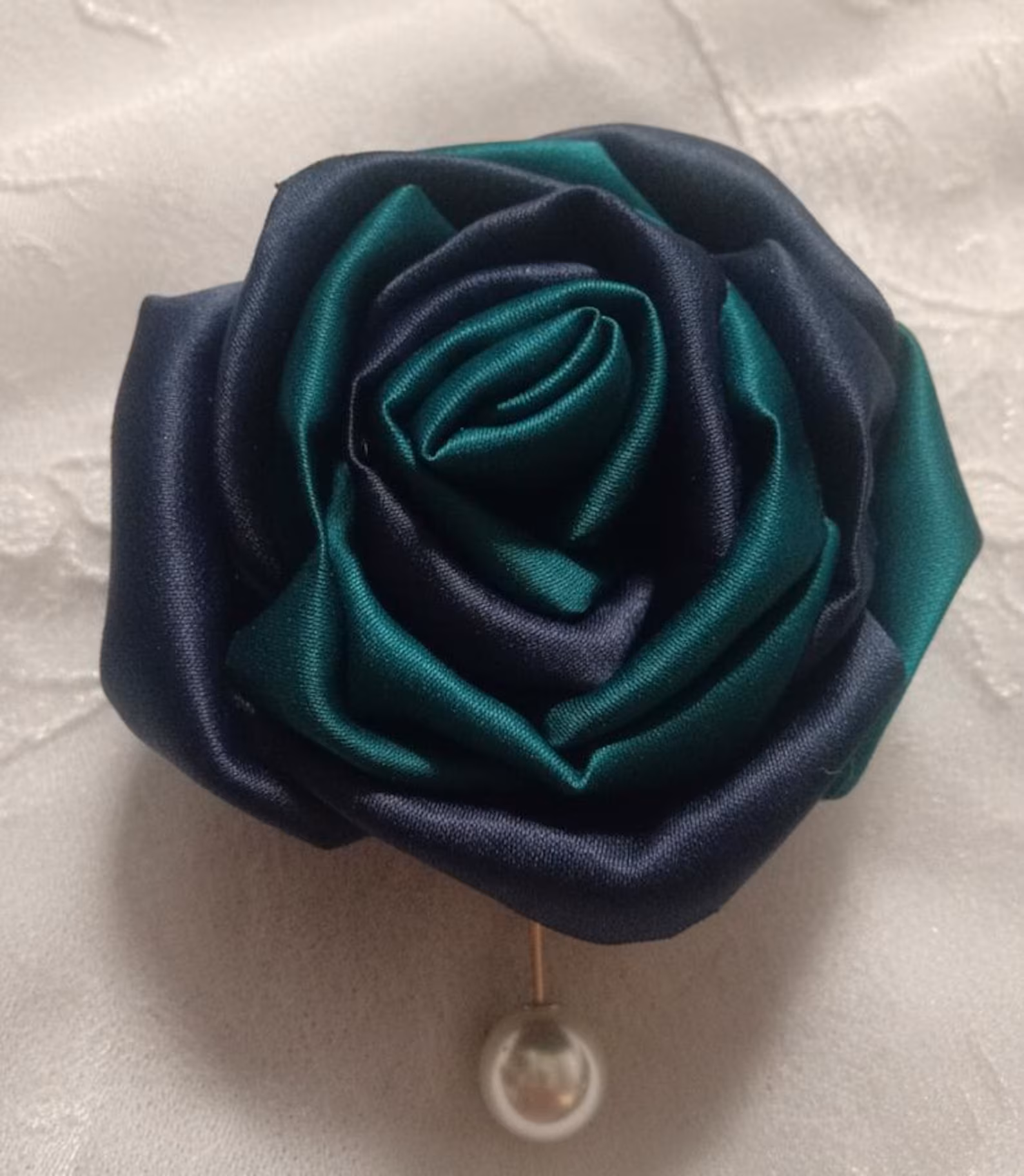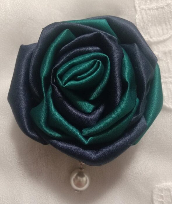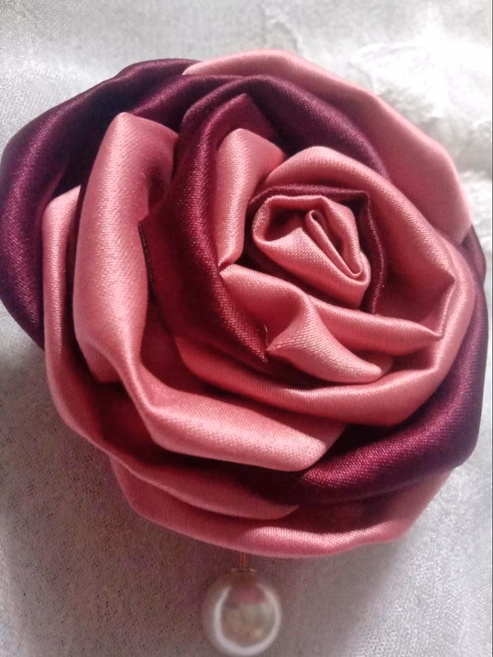 Der Artikel ist aus Satin gefertigt, mit einzelnen Blütenblättern, die einzeln für ein ästhetisch ansprechendes Design von Hand gefertigt werden.